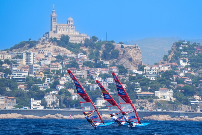 Sara Wennekes (Netherlands), Theresa Marie Steinlein (Germany) and Palma Cargo (Crotia), Women's Windsurfing - Sailing, during the Olympic Games Paris 2024. (Photo Norbert Scanella / DPPI Media / Panoramic