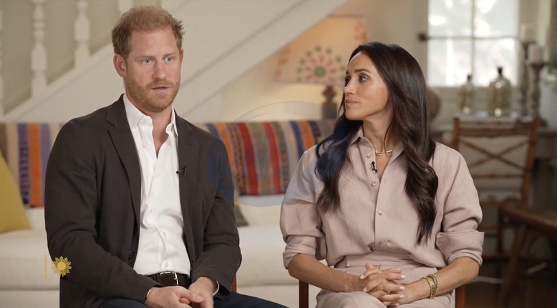 Książę Harry, książę Sussex i Meghan Markle, księżna Sussex, podczas wywiadu dla CBS News w niedzielny poranek