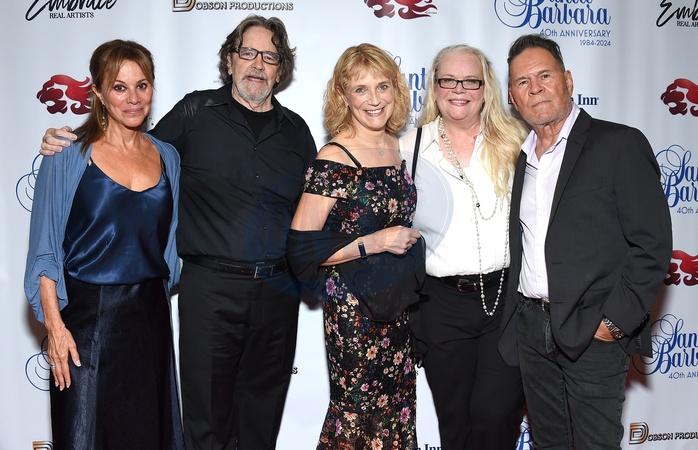 Nancy Lee Grahn, Lane Daives, Harley Jane Kozak, Marcy Walker Smith and A Martinez arriving to Santa Barbara 40th Anniversary Reunion at The Colony Theatre on August 02, 2024 in Burbank