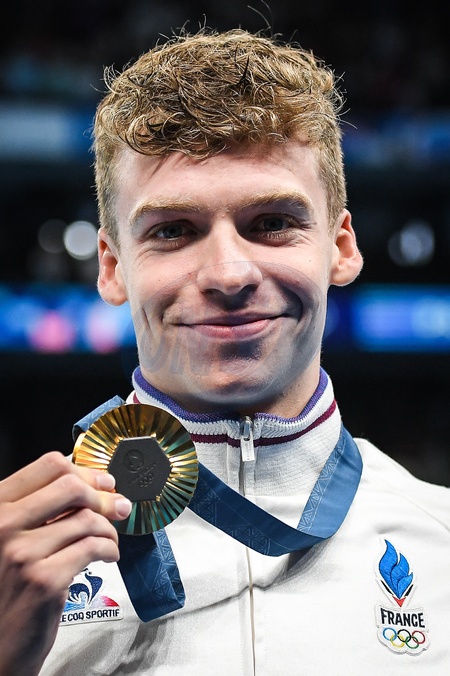 MARCHAND Leon of France celebrates with his gold medal during the Swimming, Men's 200m Individual Medley Final, Olympic Games Paris 2024 on 02 August 2024 at Paris La Defense Arena in Nanterre, France - Photo Matthieu Mirville / DPPI Media / Panoramic