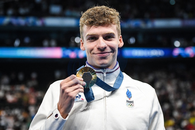 MARCHAND Leon of France celebrates with his gold medal during the Swimming, Men's 200m Individual Medley Final, Olympic Games Paris 2024 on 02 August 2024 at Paris La Defense Arena in Nanterre, France - Photo Matthieu Mirville / DPPI Media / Panoramic