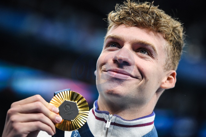 MARCHAND Leon of France celebrates with his gold medal during the Swimming, Men's 200m Individual Medley Final, Olympic Games Paris 2024 on 02 August 2024 at Paris La Defense Arena in Nanterre, France - Photo Matthieu Mirville / DPPI Media / Panoramic