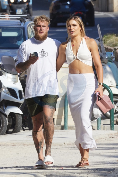 Exclusif - Le boxeur, vidéaste web américain, Jake Paul et sa compagne Jutta Leerdam passent leurs vacances à Saint-Tropez le 2 aout 2024. Exclusive - For Germany call for price - American boxer and web videographerr Jake Paul and his partner Jutta Leerdam are vacationing in Saint-Tropez on August 2, 2024.