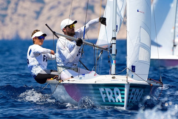 Jeremie Mion, Camille Lecointre (France) during Mixed Dinghy race - Sailing, during the Olympic Games Paris 2024