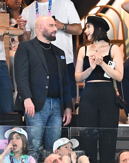 John Travolta et sa fille Ella Bleu assistent aux épreuves de gymnastique lors des Jeux Olympiques de Paris2024 (JO)