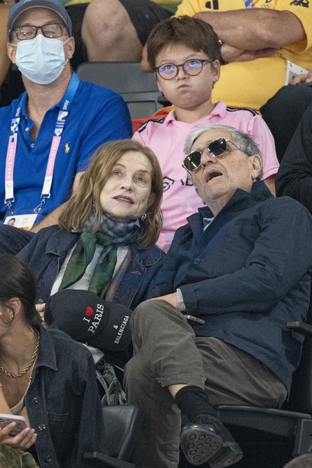 Isabelle Huppert et son mari Ronald Chammah - Célébrités assistent aux épreuves de gymnastique lors des Jeux Olympiques de Paris2024 (JO) le 3 aout 2024. © Perusseau-Jacovides-Bestimage Celebrities attend the gymnastics events during the Paris 2024 Summer Olympics (Olympic Games) on August 3, 2024.