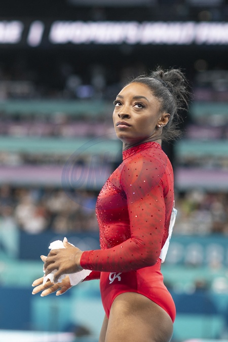 Simone Biles - Célébrités assistent aux épreuves de gymnastique lors des Jeux Olympiques de Paris2024 (JO) le 3 aout 2024. © Perusseau-Jacovides-Bestimage Celebrities attend the gymnastics events during the Paris 2024 Summer Olympics (Olympic Games) on August 3, 2024.