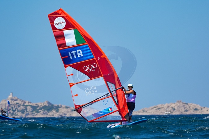 Marta Maggetti (Italy) during the final women's windsurfing Medal Race - Sailing, during the Olympic Games Paris 2024. (Photo Norbert Scanella / DPPI Media / Panoramic)