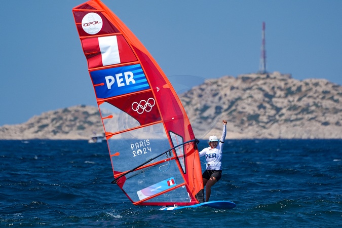 Maria Belen Bazo german (Peru) during the final women's windsurfing Medal Race - Sailing, during the Olympic Games Paris 2024. (Photo Norbert Scanella / DPPI Media / Panoramic)