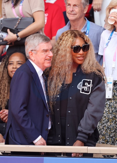 Thomas Bach, président du CIO, Serena Williams- Célébrités assistent à la victoire de Novak Djokovic face à Carlos Alcaraz lors de la finale de tennis des Jeux Olympiques de Paris 2024 (JO) sur le cour Philippe Chatrier à Roland Garros, à Paris, France, le 4 Aout 2024. © Jacovides-Perusseau/Bestimage Celebrities attend Novak Djokovic's victory over Carlos Alcaraz in the Paris 2024 Olympic Games (Olympics) tennis final on Philippe Chatrier Court at Roland Garros in Paris, France, August 4, 2024.