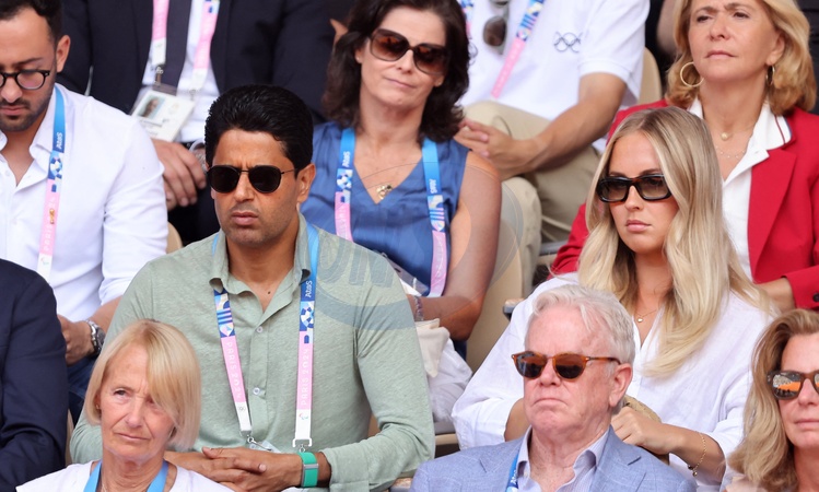 Nasser al-Khelaïfi - Célébrités assistent à la victoire de Novak Djokovic face à Carlos Alcaraz lors de la finale de tennis des Jeux Olympiques de Paris 2024 (JO) sur le cour Philippe Chatrier à Roland Garros, à Paris, France, le 4 Aout 2024. © Jacovides-Perusseau/Bestimage Celebrities attend Novak Djokovic's victory over Carlos Alcaraz in the Paris 2024 Olympic Games (Olympics) tennis final on Philippe Chatrier Court at Roland Garros in Paris, France, August 4, 2024.