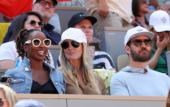 Célébrités assistent à la victoire de Novak Djokovic face à Carlos Alcaraz lors de la finale de tennis des Jeux Olympiques de Paris 2024 (JO) sur le cour Philippe Chatrier à Roland Garros, à Paris