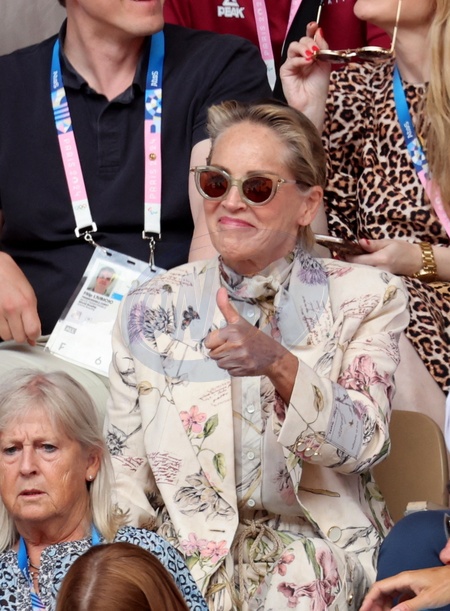 Sharon Stone - Célébrités assistent à la victoire de Novak Djokovic face à Carlos Alcaraz lors de la finale de tennis des Jeux Olympiques de Paris 2024 (JO) sur le cour Philippe Chatrier à Roland Garros, à Paris, France, le 4 Aout 2024. © Jacovides-Perusseau/Bestimage Celebrities attend Novak Djokovic's victory over Carlos Alcaraz in the Paris 2024 Olympic Games (Olympics) tennis final on Philippe Chatrier Court at Roland Garros in Paris, France, August 4, 2024.