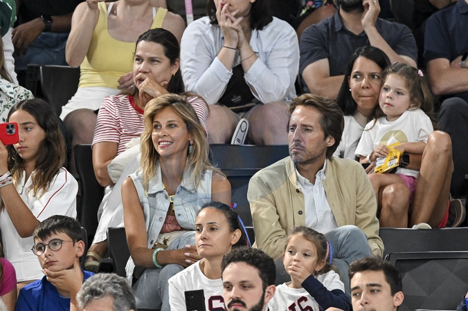 Ophélie Meunier et son mari Mathieu Vergne - Les célébrités assistent aux épreuves de gymnastique lors des Jeux Olympiques de Paris2024 (JO), le 5 août 2024. © Jacovides-Perusseau / Bestimage Celebrities attend the gymnastics events during the Paris 2024 Summer Olympics (Olympic Games) on August 5, 2024.