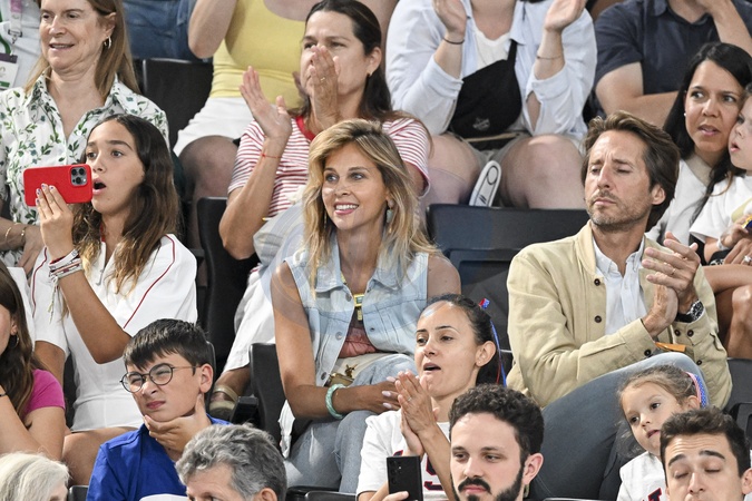 Ophélie Meunier et son mari Mathieu Vergne - Les célébrités assistent aux épreuves de gymnastique lors des Jeux Olympiques de Paris2024 (JO), le 5 août 2024. © Jacovides-Perusseau / Bestimage Celebrities attend the gymnastics events during the Paris 2024 Summer Olympics (Olympic Games) on August 5, 2024.