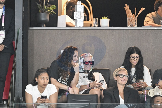 Megan Rapinoe et sa compagne Sue Bird - Les célébrités assistent aux épreuves de gymnastique lors des Jeux Olympiques de Paris2024 (JO), le 5 août 2024. © Jacovides-Perusseau / Bestimage Celebrities attend the gymnastics events during the Paris 2024 Summer Olympics (Olympic Games) on August 5, 2024.