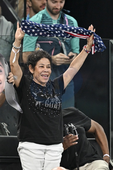 Nellie Biles, la mère de S.Biles) - Les célébrités assistent aux épreuves de gymnastique lors des Jeux Olympiques de Paris2024 (JO), le 5 août 2024. © Jacovides-Perusseau / Bestimage Celebrities attend the gymnastics events during the Paris 2024 Summer Olympics (Olympic Games) on August 5, 2024.