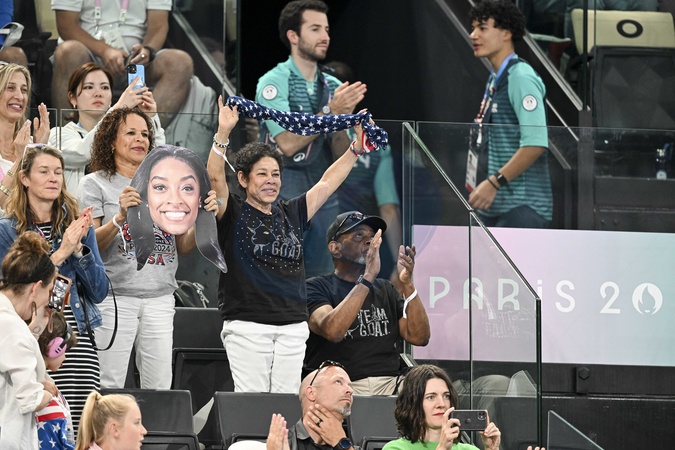 Nellie et Ronald Biles (parents de Simone Biles) - Les célébrités assistent aux épreuves de gymnastique lors des Jeux Olympiques de Paris2024 (JO), le 5 août 2024. © Jacovides-Perusseau / Bestimage Celebrities attend the gymnastics events during the Paris 2024 Summer Olympics (Olympic Games) on August 5, 2024.
