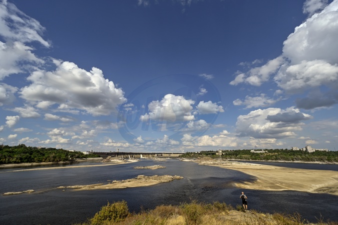ZAPORIZHZHIA, UKRAINE - JULY 31, 2024 - Clouds are seen above the Dnipro River as the water level dropped after Russian invaders set off the Kakhovka Dam on 6 June 2023, Zaporizhzhia, southeastern Ukraine., Credit:Dmytro Smolienko / Avalon