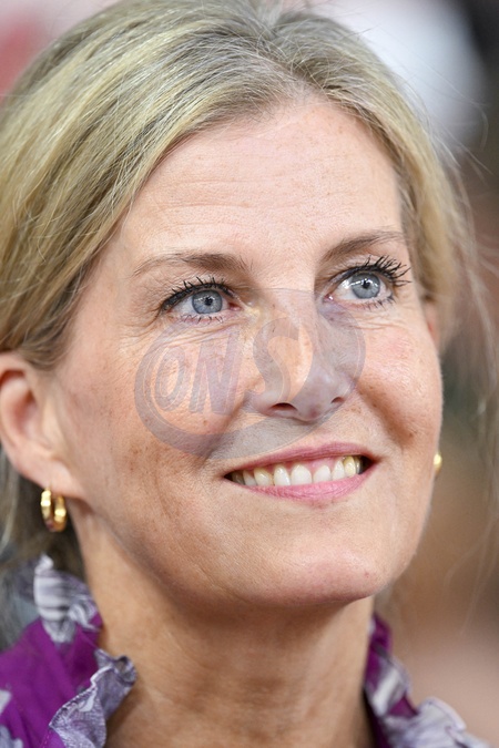 La duchesse Sophie d'Edimbourg assiste à la victoire des britanniques à la finale du sprint par équipes féminin sur piste en cyclisme lors des Jeux Olympiques (JO) de Paris 2024 au Vélodrome National à Saint-Quentin-en-Yvelines