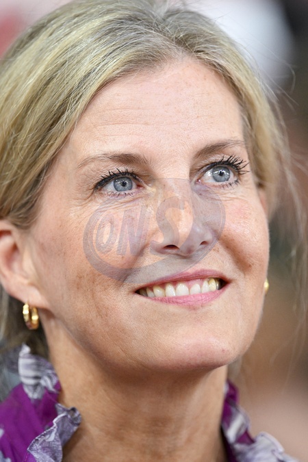 La duchesse Sophie d'Edimbourg assiste à la victoire des britanniques à la finale du sprint par équipes féminin sur piste en cyclisme lors des Jeux Olympiques (JO) de Paris 2024 au Vélodrome National à Saint-Quentin-en-Yvelines