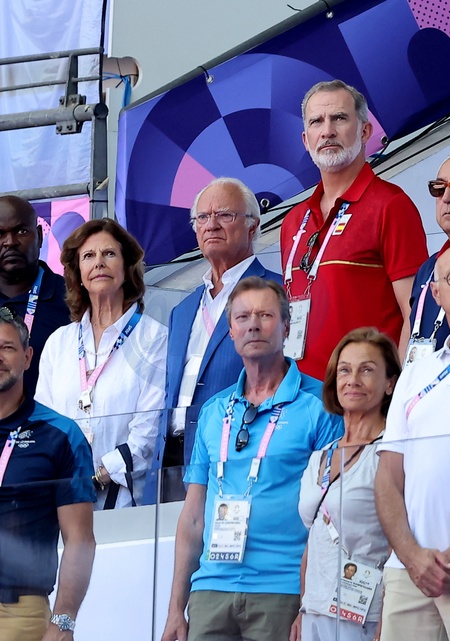 Król Karol XVI Gustaw, królowa Sylwia, król Felipe VI, księżniczka Catharina-Amalia i wielki książę Henryk Luksemburski biorą udział w wydarzeniach lekkoatletycznych podczas Igrzysk Olimpijskich w Paryżu w 2024 r.