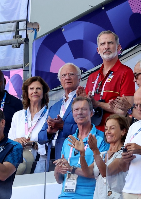 Król Karol XVI Gustaw, królowa Sylwia, król Felipe VI, księżniczka Catharina-Amalia i wielki książę Henryk Luksemburski biorą udział w wydarzeniach lekkoatletycznych podczas Igrzysk Olimpijskich w Paryżu w 2024 r.