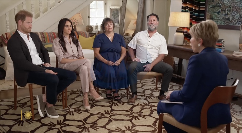 Pictures must credit: CBS Sunday Morning Prince Harry and Meghan Markle have spoken about their new initiative to support parents whose children have been victimised by online bullying. The Duke and Duchess of Sussex's Archewell Foundation is launching The Parents Network. Speaking to US TV show Sunday Morning journalist Jane Pauley, Harry, 39, and Meghan, 43, spoke about the dangers of social media and suicide. The foundation's pilot program will look to help healing process for families after the death of a child whether by suicide from trolling from visiting dark corners of the web where illicit drugs are available. The interview coincided with the launch of the support group near Santa Barbara, California where the royal couple now live. A group of parents who have lost a child directly or indirectly as a result of exposure to online met the royals at an informal gathering. Harry said: "I think one of the scariest things that we've learned over the course of the last 15 to 17 years that social media has been around, and more so recently, is that it could happen to absolutely anybody. " I mean we always talk about in the olden days if your kids were under your roof you knew what they were up to — at least they were safe. "Now they can be in the next door room on a tablet or on a phone and can be going down these rabbit holes and before you know it within 24 hours they could be taking their life.” Meghan added: "Our kids are young, they're three and five ,they're amazing but all you want to do as parents is protect them and so as we can see what's happening in the online space. " We know that there's a lot of work to be done there and we're just happy to be able to be a part of it .” Picture supplied by JLPPA