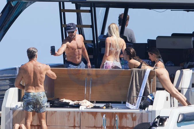 Exclusif - Gerard Butler, 54 ans, sa nouvelle compagne Penny Lane, 29 ans, et Zac Efron, 36 ans, en vacances sur un yacht dans le Golfe de Saint-Tropez, Cote d'Azur,