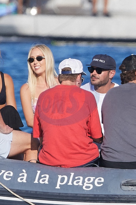 Exclusif - Gerard Butler, 54 ans, sa nouvelle compagne Penny Lane, 29 ans, Zac Efron, 36 ans, et des amis en vacances dans le Golfe de Saint-Tropez, Cote d'Azur, FRance, le 8 juillet 2024. No Web pou la bBelgique et la suisse Exclusive - Gerard Butler, 54, his new girlfriend Penny Lane, 29, Zac Efron, 36, and friends on vacation in the Gulf of Saint-Tropez, French Riviera France, July 8, 2024.