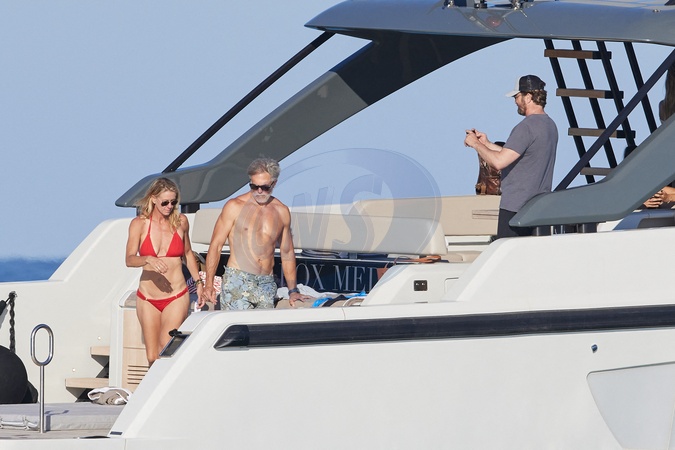 Exclusif - Gerard Butler, 54 ans, sa nouvelle compagne Penny Lane, 29 ans, Zac Efron, 36 ans, et des amis en vacances dans le Golfe de Saint-Tropez, Cote d'Azur, FRance, le 8 juillet 2024. No Web pou la bBelgique et la suisse Exclusive - Gerard Butler, 54, his new girlfriend Penny Lane, 29, Zac Efron, 36, and friends on vacation in the Gulf of Saint-Tropez, French Riviera France, July 8, 2024.