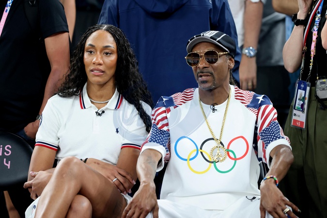 A'ja Wilson et Snoop Dogg - Les célébrités assistent à la victoire de l'équipe des USA de basket face au Brésil (122-87) lors des Jeux Olympiques de Paris2024, le 6 août 2024. © Jacovides-Perusseau / Bestimage Celebrities attend the victory of the US basketball team against Brésil (122-87) during the Paris 2024 Olympic Games, on August 6, 2024.