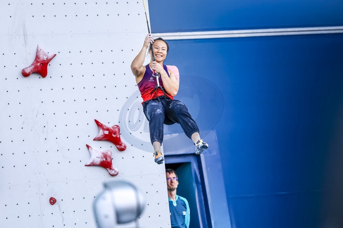 SALLSABILLAH Rajiah of Indonesia DENG Lijuan of People's Republic of China Sport Climbing Women's Speed, Final during the Olympic Games Paris 2024 on 7 August 2024 at Le Bourget Sport Climbing Venue in Le Bourget, France. © Gregory Lenormand / DPPI Media / Panoramic / Bestimage