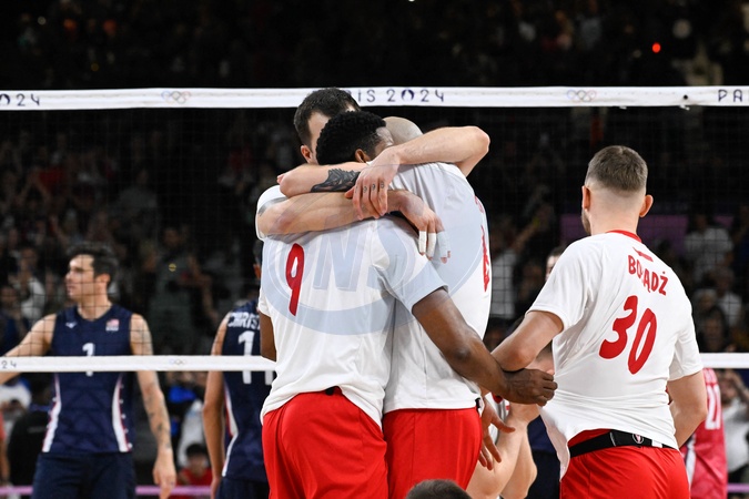 Półfinałowy mecz siatkówki pomiędzy Stanami Zjednoczonymi a Polską podczas Igrzysk Olimpijskich Paryż 2024 (OG) na stadionie Arena Paris Sud