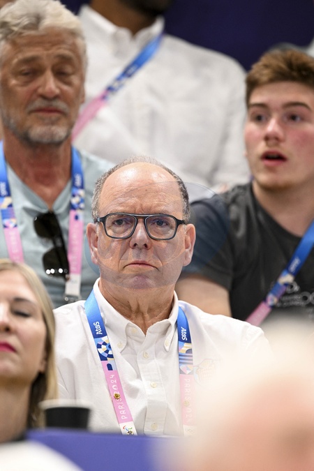 Le prince Albert II de Monaco en tribune lors de la demi-finale de volley-ball France / Italie aux jeux olympiques Paris 2024 (JO 2024) le 7 août 2024. Les bleus remportent le match et retrouveront la Pologne en finale. © Perusseau / Jacovides / Bestimage The Princely Family of Monaco attend the volleyball semi-final at the Paris 2024 Olympic Games on august 7th 2024
