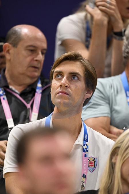 Ben-Sylvester Strautmann en tribune lors de la demi-finale de volley-ball France / Italie aux jeux olympiques Paris 2024 (JO 2024) le 7 août 2024. Les bleus remportent le match et retrouveront la Pologne en finale. © Perusseau / Jacovides / Bestimage The Princely Family of Monaco attend the volleyball semi-final at the Paris 2024 Olympic Games on august 7th 2024