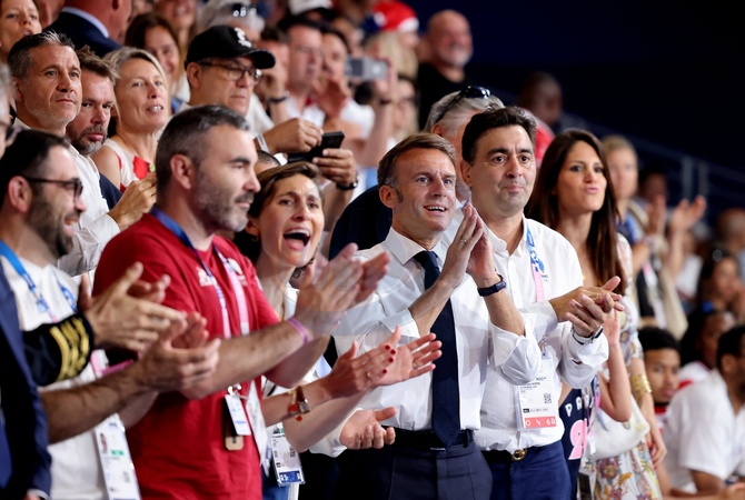 Exclusif - Prix Spécial - No Web - Amélie Oudéa-Castéra, Emmanuel Macron - Emmanuel Macron assiste aux épreuves de judo lors des Jeux Olympiques de Paris2024 (JO) le 2 aout 2024. © Dominique Jacovides-Pierre Perusseau/Bestimage Excluive - For Germany call for Price - Emmanuel Macron attends the judo events during the Paris2024 Olympic Games (Olympics) on August 2, 2024. © Dominique Jacovides-Pierre Perusseau/Bestimage