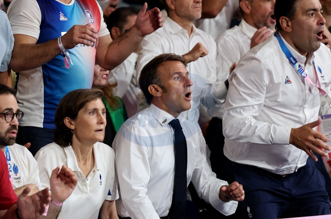 Exclusif - Prix Spécial - No Web - Amélie Oudéa-Castéra, Emmanuel Macron - Emmanuel Macron assiste aux épreuves de judo lors des Jeux Olympiques de Paris2024 (JO) le 2 aout 2024. © Dominique Jacovides-Pierre Perusseau/Bestimage Excluive - For Germany call for Price - Emmanuel Macron attends the judo events during the Paris2024 Olympic Games (Olympics) on August 2, 2024. © Dominique Jacovides-Pierre Perusseau/Bestimage