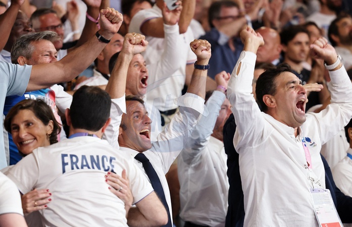Exclusif - Prix Spécial - No Web - Amélie Oudéa-Castéra, Emmanuel Macron - Emmanuel Macron assiste aux épreuves de judo lors des Jeux Olympiques de Paris2024 (JO) le 2 aout 2024. © Dominique Jacovides-Pierre Perusseau/Bestimage Excluive - For Germany call for Price - Emmanuel Macron attends the judo events during the Paris2024 Olympic Games (Olympics) on August 2, 2024. © Dominique Jacovides-Pierre Perusseau/Bestimage