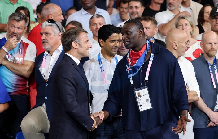 Exclusif - Prix Spécial - No Web - Emmanuel Macron, Nasser al-Khelaïfi, Omar Sy - Emmanuel Macron assiste aux épreuves de judo lors des Jeux Olympiques de Paris2024 (JO) le 2 aout 2024. © Dominique Jacovides-Pierre Perusseau/Bestimage Excluive - For Germany call for Price - Emmanuel Macron attends the judo events during the Paris2024 Olympic Games (Olympics) on August 2, 2024. © Dominique Jacovides-Pierre Perusseau/Bestimage