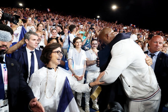 Exclusif - Prix Spécial - No Web - Rachida Dati, Emmanuel Macron et Teddy Riner - Emmanuel Macron assiste aux épreuves de judo lors des Jeux Olympiques de Paris2024 (JO) le 2 aout 2024. © Dominique Jacovides-Pierre Perusseau/Bestimage Excluive - For Germany call for Price - Emmanuel Macron attends the judo events during the Paris2024 Olympic Games (Olympics) on August 2, 2024. © Dominique Jacovides-Pierre Perusseau/Bestimage