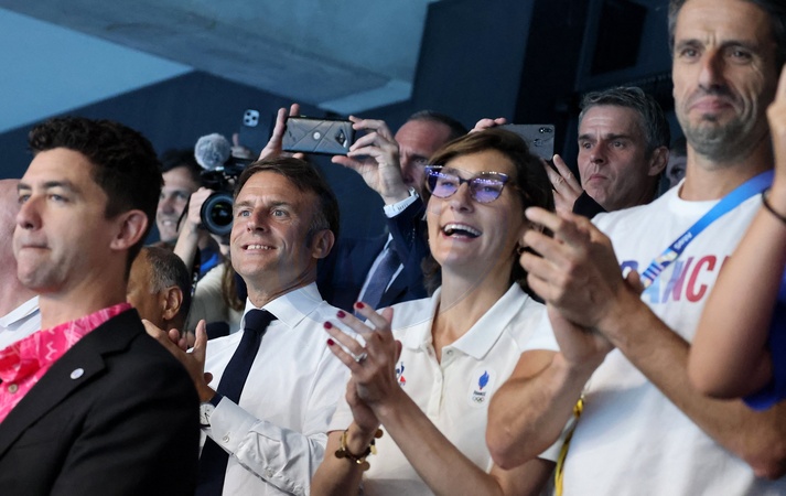 xclusif - Prix Spécial - No Web - Emmanuel Macron assiste aux épreuves de natation lors des Jeux Olympiques de Paris2024 (JO)