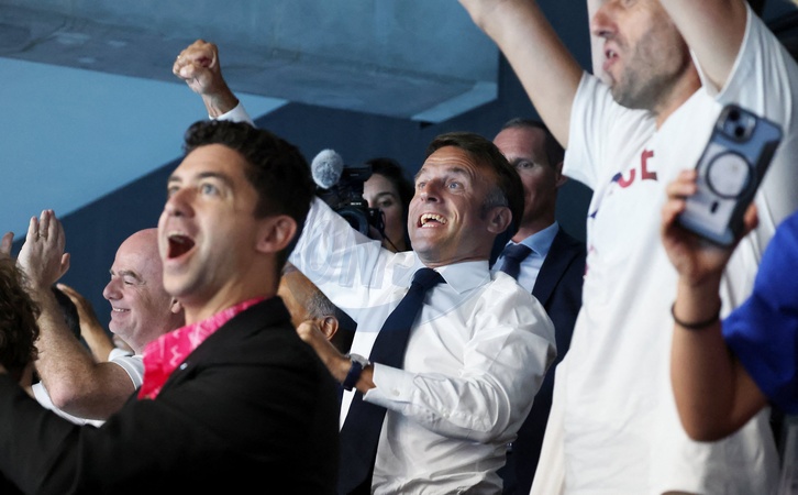xclusif - Prix Spécial - No Web - Emmanuel Macron assiste aux épreuves de natation lors des Jeux Olympiques de Paris2024 (JO)