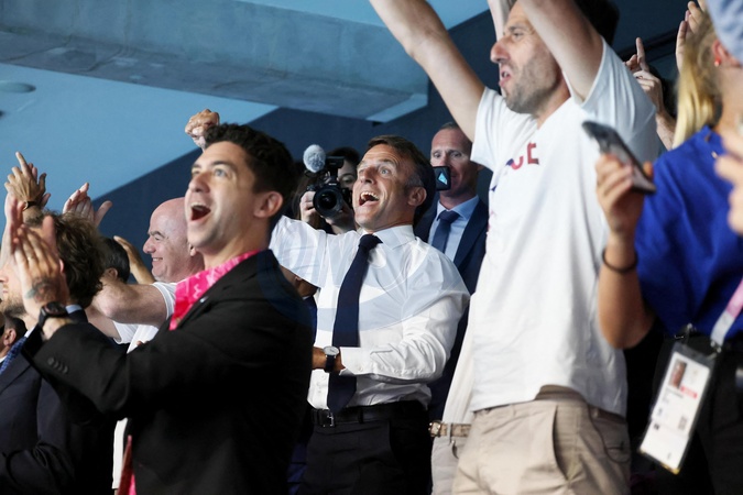 xclusif - Prix Spécial - No Web - Emmanuel Macron assiste aux épreuves de natation lors des Jeux Olympiques de Paris2024 (JO)
