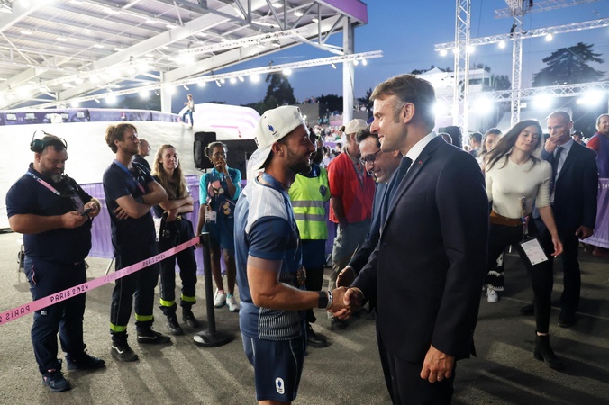 Exclusif - Prix Spécial - No Web - Emmanuel Macron assiste aux épreuves de BMX lors des Jeux Olympiques de Paris2024 (JO)