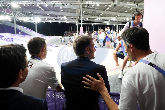 Exclusif - Prix Spécial - No Web - Emmanuel Macron assiste aux épreuves de BMX lors des Jeux Olympiques de Paris2024 (JO)