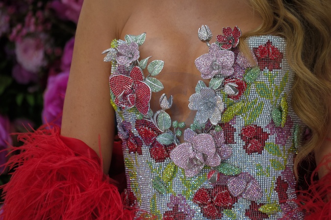 Blake Lively - dress detail photographed arriving at the ‘It Ends with Us' UK Gala Screening at the Odeon Luxe Leicester Square in London, UK on Thu 8 August 2024., Credit:Julie Edwards / Avalon
