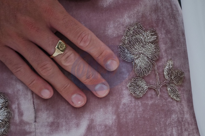 Molly Smith and Tom Clare - dress detail photographed arriving at the ‘It Ends with Us' UK Gala Screening at the Odeon Luxe Leicester Square in London, UK on Thu 8 August 2024., Credit:Julie Edwards / Avalon