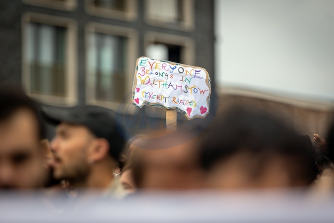 Walthamstow, London, UK. Wednesday 7th August 2024.Thousands of people including local residents came together in Walthamstow Central for a large unity rally outside Waltham Forest Immigration Bureau. The Community came together to defend the immigration bureau as there was a threat that the English defense league (EDL) were going to turn up to the immigration bureau., Credit:Abdullah Bailey / Avalon