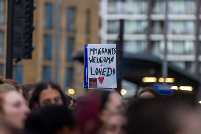 Walthamstow, London, UK. Wednesday 7th August 2024.Thousands of people including local residents came together in Walthamstow Central for a large unity rally outside Waltham Forest Immigration Bureau. The Community came together to defend the immigration bureau as there was a threat that the English defense league (EDL) were going to turn up to the immigration bureau., Credit:Abdullah Bailey / Avalon